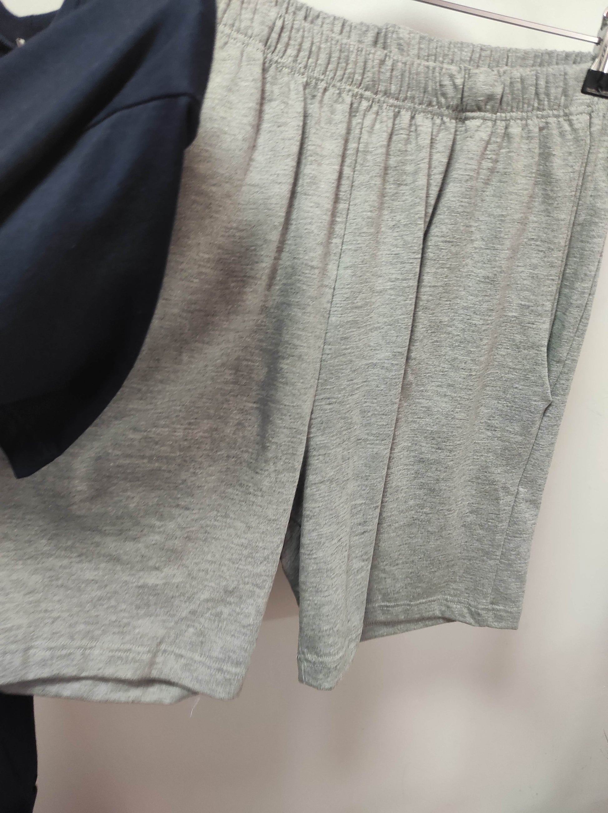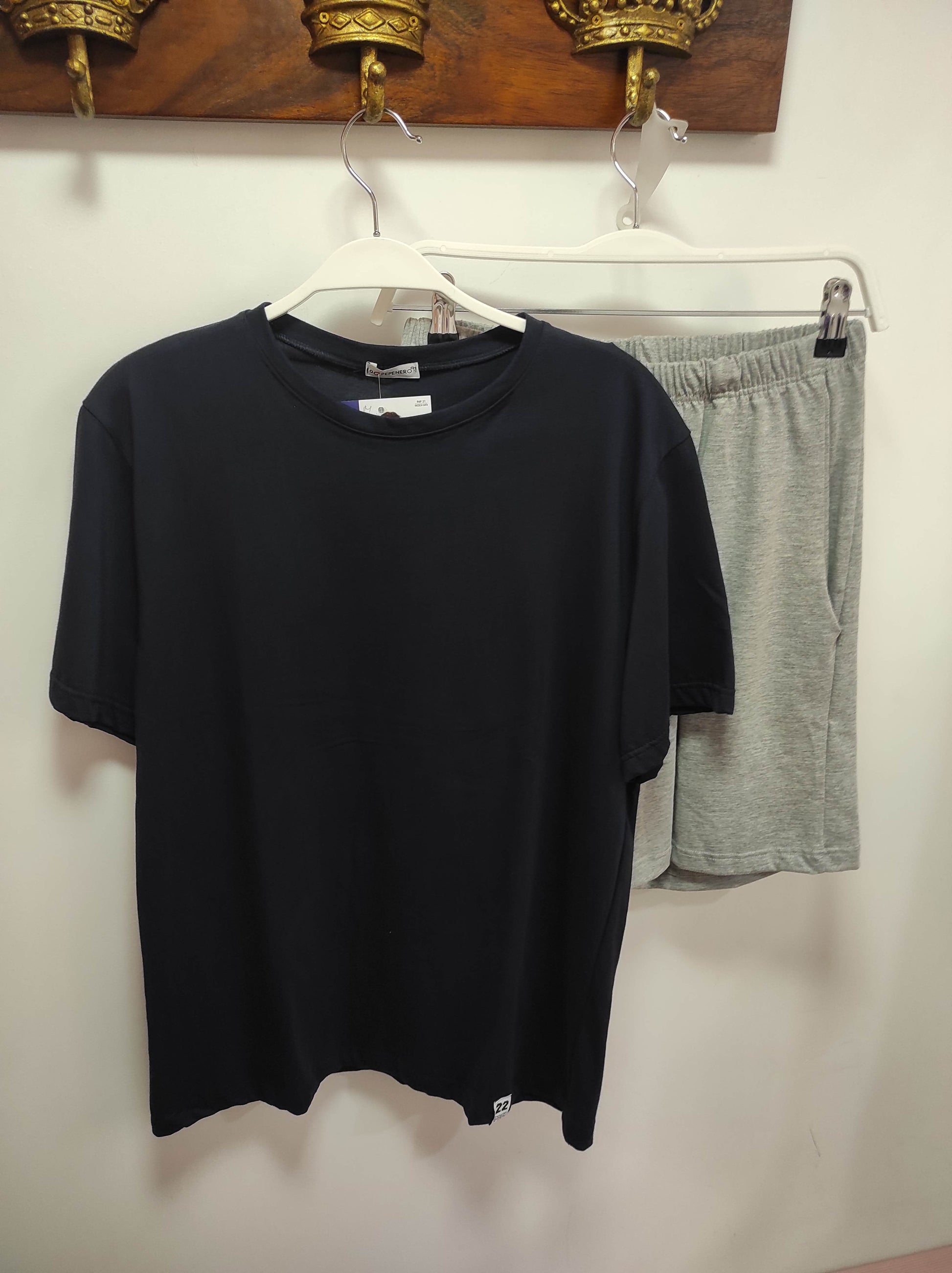 Πιτζάμες ανδρικές με μαύρο κοντομάνικο και γκρι σορτς- βερμούδα σε άνετη γραμμή με λάστιχο στη μέση.