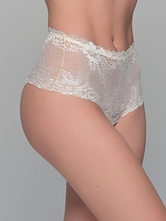 Ψηλόμεσο Brazilian slip από ελαστική δαντέλα. Με καβαλάκι από βαμβακερό ύφασμα εσωτερικά για καλύτερη υγιεινή προστασία.